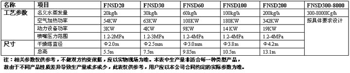FNSD系列噴泉式壓力噴霧造粒干燥機技術參數表:
