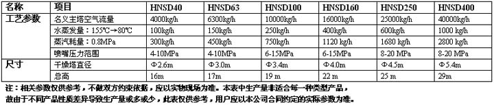 HNSD系列高塔壓力噴霧干燥機技術參數表: