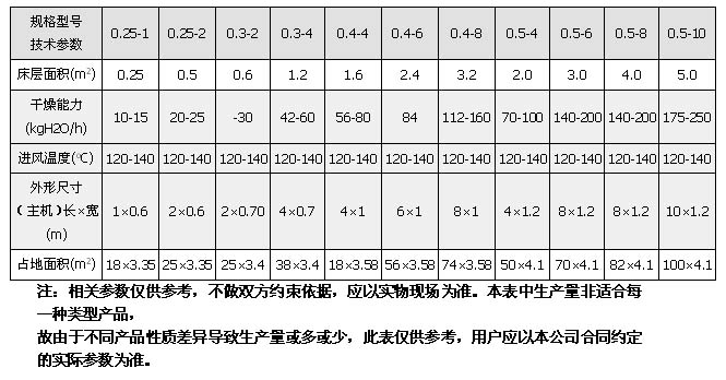 箱式流化床干燥機系列技術參數表: